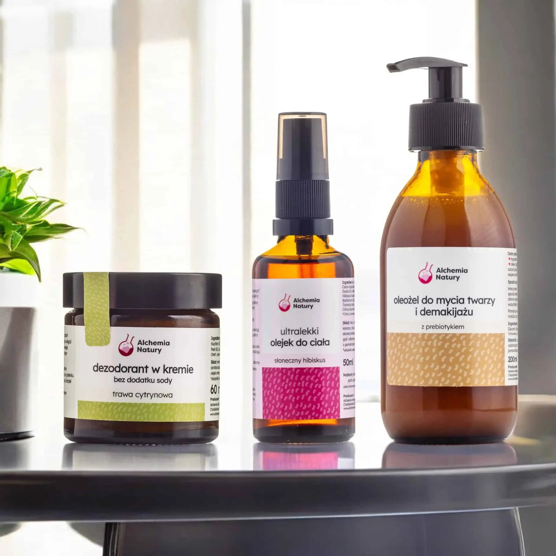 W ofercie Alchemii Natury znajdziesz kosmetyki naturalne bez alkoholu, SLS i parabenów. Wierzymy, że prawdziwe piękno tkwi w naturze, dlatego nasze produkty są wolne od sztucznych dodatków, które mogą podrażniać skórę. Stawiamy na wegańskie kosmetyki o prostym, ale skutecznym składzie roślinnym. Wychodząc naprzeciw oczekiwaniom klientów, oferujemy również naturalne kosmetyki bez zapachu, idealne dla osób o wrażliwej skórze lub preferujących minimalistyczną pielęgnację.